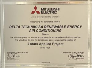 Η εταιρεία μας τιμήθηκε με το βραβείο: “DELTA TECHNIKI SA – Renewable Energy – Air Conditioning | Greece | 2 Stars Applied Project”